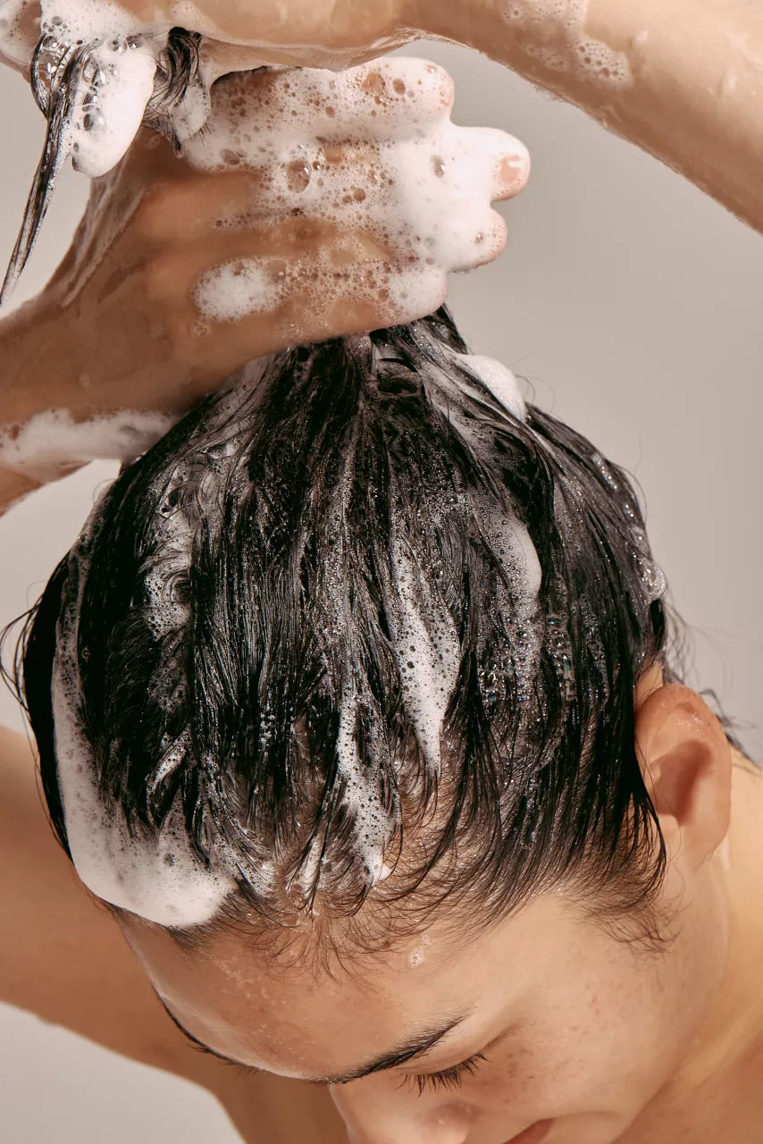 After thoroughly dampening your scalp and hair with lukewarm water, apply the soap directly to your hair.